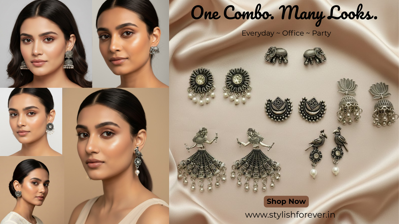 Office Wear Oxidized Earring Combo – Set of 10